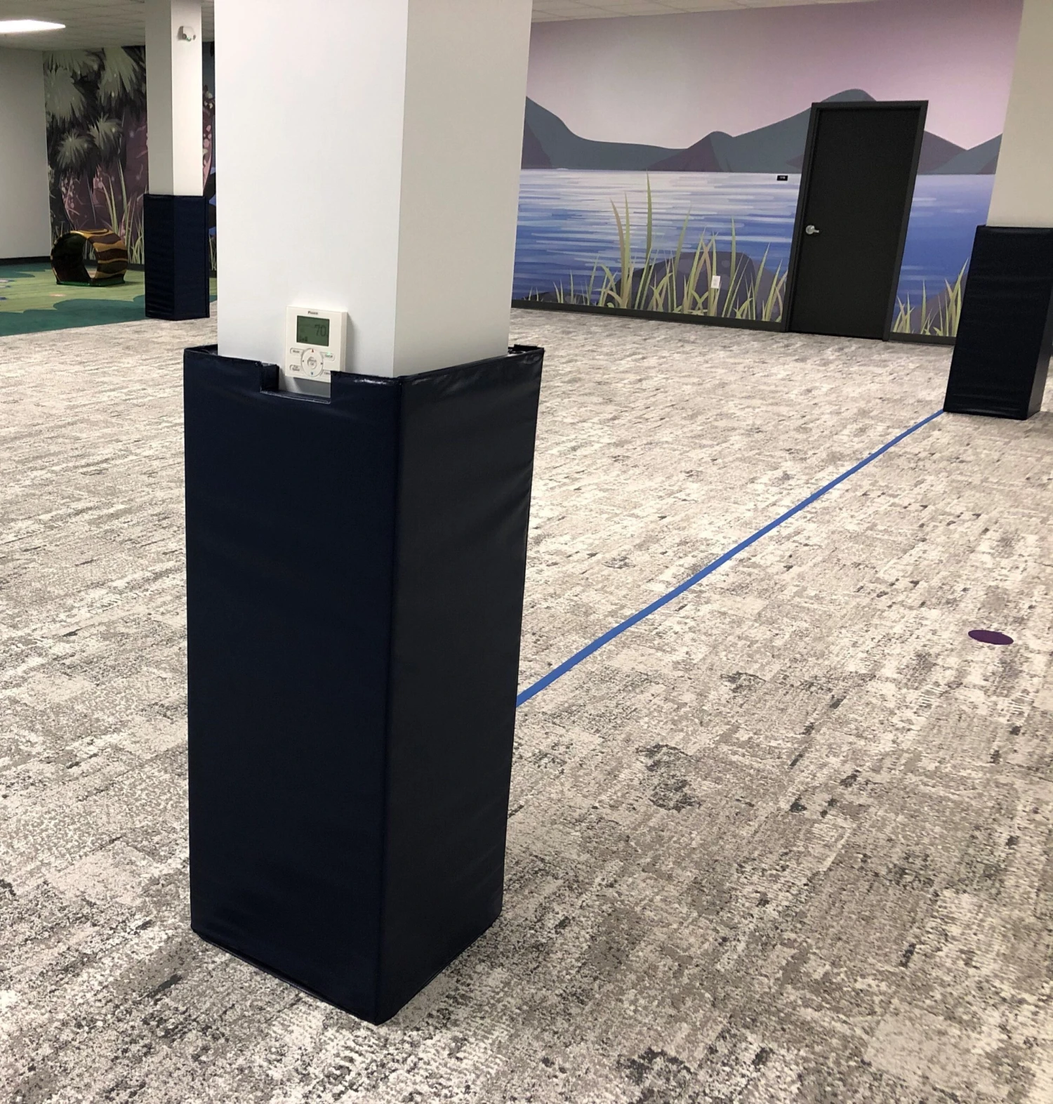 Each column pad arrives fully prepared for installation. There are adhesive fabric strips on the INSIDE portion of the pad. To secure the pad to the column, simply peel the paper off to reveal sticky backing, adhere to column and close end flap.