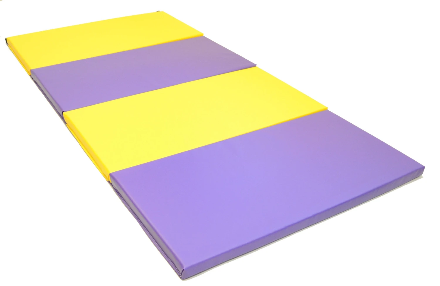 4’ x 8’ x 2” Gymnastics Mat folds into 2’ sections for convenient storage and shipping. Fastening strips on each end of the gymnastic mat allows connection to additional mats to create a longer padded area. Our intermediate level folding gymnastics mats are Constructed of 2″ thick 100 ILD open cell high density polyurethane foam encased in a durable fire-rated 18 ounce vinyl coated nylon cover that is double stitched for lasting safety and protection. The foam inside our intermediate gym mats is sponge like, making this specific gymnastic mat ideal for small children and low impact activities. Vinyl cover is lead-free, phthalate-free, antimicrobial, antifungal, and mildew resistant. CPSIA certified and made in the USA!