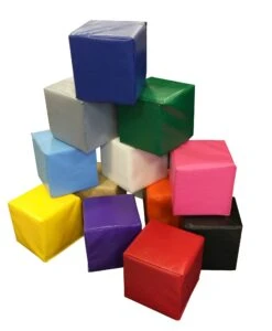 Blocks are constructed of soft polyurethane foam, and can be easily cleaned with any non-abrasive mild detergent and are perfect for the home or an indoor playground.